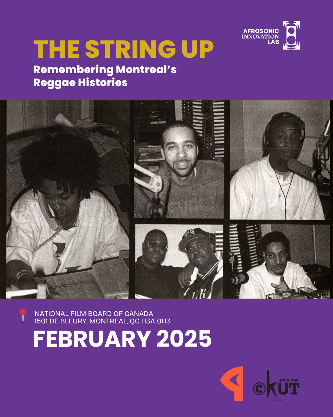 The String Up is a multimedia exhibition curated by the Afrosonic Innovation Lab sampling elements of Montreal’s rich reggae music histories. It is designed to honour and salute the many Selectahs, Sound Systems and DeeJays that have made the scene vibrant and memorable. Enjoy the sounds, images and visuals from Montreal’s rich sonic history.